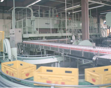 This bottling system, designed for filling dairy products, integrates all processes from bottle washing through to filled bottle casing into a single production line.