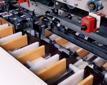 Cartoning MachineThis machine places an accumulated carton from the carton magazine, opens the carton, loads the product and seals.