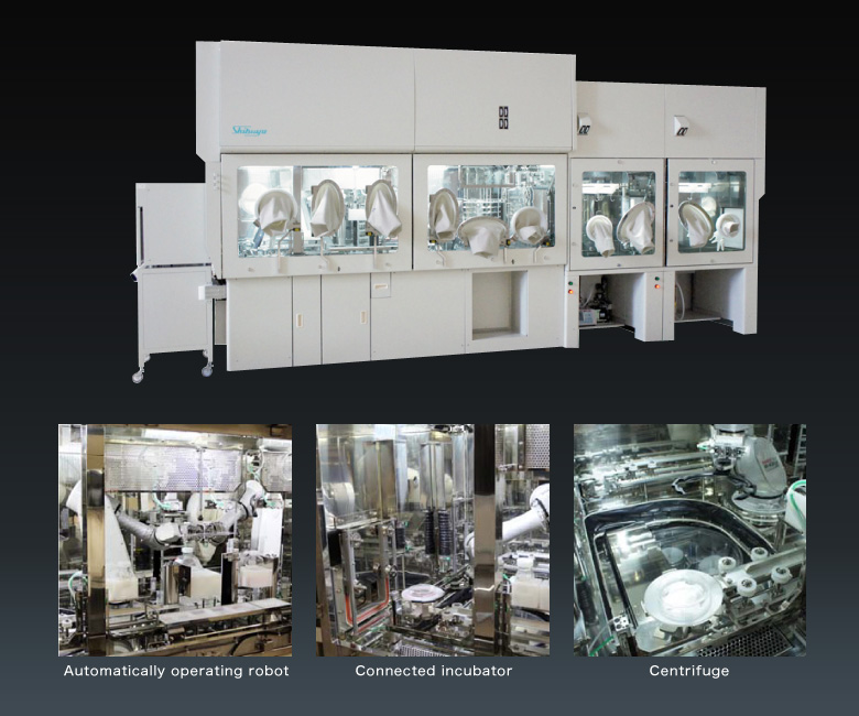 This system consists of an isolator with a built-in two-armed robot that can be decontaminated using vaporized hydrogen peroxide. A sterile operation environment of a CPC and an automated cell culture and cell processing robot are integrated inside this compact isolator.