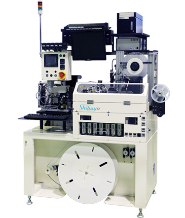 This taping (tape and reel) machine performs polarity alignment while transferring supplied LEDs by the indexing unit, and inserts LEDs into embossed tape for heat sealing.