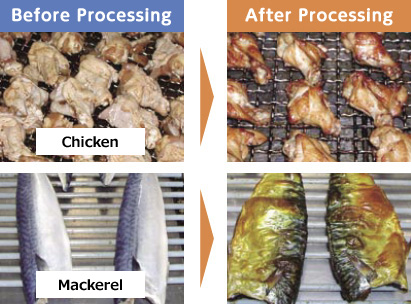 Super Heated Steam Cooking SystemThis super-heated steam type cooking system cooks food continuously while sealing in the flavors by directly spraying super-heated steam on a wide range of food including fish, meat, and vegetables.
