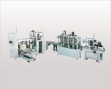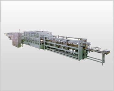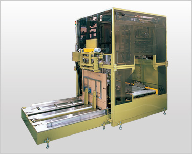 This Caser puts lengthy film rolls in a box, closes and binds with band. It can pack king-size or lengthy materials, so we offer the system which meets your packaging pattern, production ability or layout of factory.