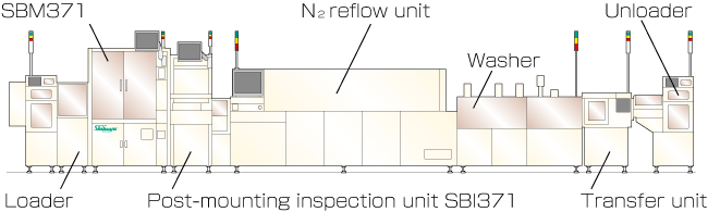 A fully automatic ball attach line can be configured by connecting with the optional post-ball attach inspection system (model SBI371).