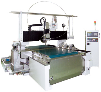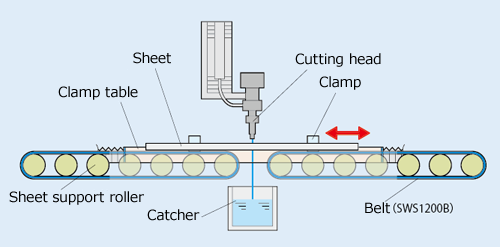 It is a multi-purpose machine which is excellent in total balance. With this water jet cutting machine, the sheet for cutting is moved during cutting and the machine can be incorporated in a production line.