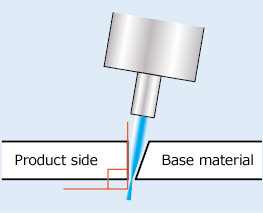 - Taper on the product side is eliminated to obtain a right angle by controlling the angle of the head during high-speed cutting so that the water jet is tilted toward the base material side.